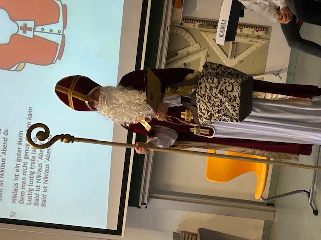 Ein besonderer Moment erwartete die gesamte Grundschule im gemeinsamen Morgenkreis: Der Heilige Nikolaus kam zu Besuch. Gespannt und voller Vorfreude begrüßten die Mädchen den Nikolaus mit einem schönen Lied, das den Raum mit festlicher Stimmung erfüllte. Der Nikolaus nahm sich anschließend Zeit für ein kurzes Gespräch mit den Kindern. Er erzählte ein wenig von seiner Aufgabe und hörte den Kindern aufmerksam zu. Danach übergab er den Lehrerinnen für jedes Kind ein Geschenk, das später verteilt werden sollte. Nach diesem feierlichen Moment verabschiedete sich der Nikolaus wieder. Zum Abschluss hörten die Mädchen noch Geschichten vom Heiligen Nikolaus und davon, wie er anderen Menschen half und Gutes tat.