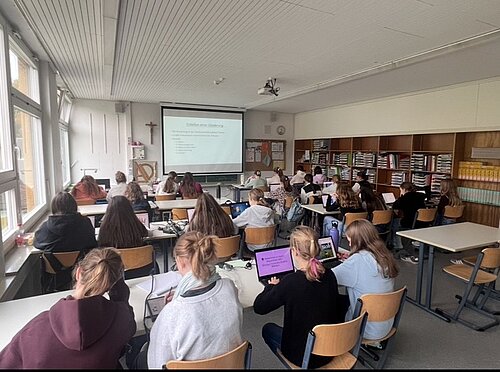 Die Siebtklässlerinnen erhielten eine Einführung in PowerPoint und übten, wie digitale Präsentationen ansprechend gestaltet werden.