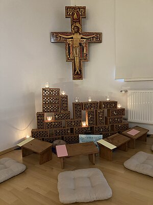 Am 13. Juni machten sich alle Schülerinnen und Lehrerinnen der Grundschule Klösterle sowie einige Mamas, Papas und Omas auf den Weg, um zum Kloster Kellenried zu pilgern. Schon früh trafen die Kinder der 4 Grundschulklassen an diesem Tag in der Schule ein, um sich auf verschiedene Weise zum gemeinsamen Treffpunkt in Weiler bei Berg zu machen. Während die Dritt- und Viertklässlerinnen eine kurze Etappe mit dem Bus nach Dietenhofen machten und dann nach Weiler wanderten, durften die Mädchen der ersten und zweiten Klasse direkt zu der Marienkapelle in Weiler fahren. In der Kapelle stimmten die Viertklässerinnen die Schulgemeinschaft mit einem kleinen Anspiel auf den Pilgerweg ein. Nach schönen Liedern und dem Pilgersegen machten sich alle auf den gemeinsamen Weg durch die wunderschöne Natur. Es wurden leuchtende Blumen, schattenspendende Bäume und Sträucher, Pferde, schöne Schmetterlinge und vieles mehr entdeckt. An zwei Stationen dankten die Mädchen Gott für seine prächtige Schöpfung und sangen schöne Lieder. Immer zwei Mädchen durften den Pilgerstab voraustragen, an dem ein kleines Säckchen mit Anliegen der Mädchen befestigt war. Natürlich machte das viele Wandern auch großen Hunger, daher durften kleine Vesperpausen nicht fehlen. Gegen 12 Uhr kamen alle schließlich am Kloster Kellenried an und wurden herzlich von den Ordensschwestern begrüßt und zur Mittagshore in ihre schöne Klosterkirche eingeladen. Nach dem gemeinsamem Gebet und Gesang mit den Benediktinerinnen, übergab Frau Zimmermann die Zettel mit den Anliegen der Mädchen an die Schwestern. Diese versprachen für alle Bitten und Sorgen zu beten. Im tollen Klostergarten aßen die Schülerinnen, Lehrerinnen, Erzieherinnen und Verwandte das mitgebrachte Vesper und konnten ihre Mittagspause genießen. Natürlich durfte auch ein Besuch im Klosterladen nicht fehlen. Mit abschließenden Dankesworten und einer kleinen schokoladigen Belohnung für jedes Mädchen von Frau Zimmermann, endete die wunderschöne Kinderwallfahrt und alle machten sich mit Autos und dem Bus wieder auf den Heimweg. Vielen Dank, liebe Schwestern vom Kloster Kellenried, für diesen schönen Tag. Wir kommen gerne wieder.